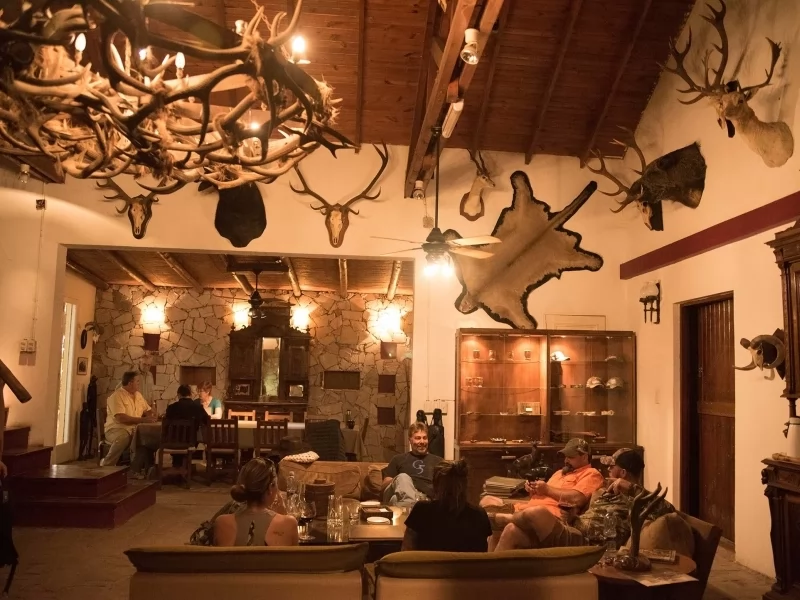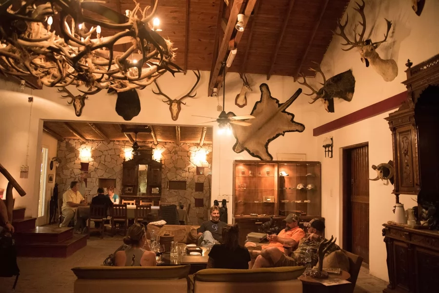 SAN EDUARDO LODGE. It is located 62 miles from Santa Rosa city, in the province of La Pampa, Argentina, and around 400 miles from Buenos Aires Capital City. The lodge rests on a natural balcony by the hills and the ravines of Quehue Valley, that is the reason why it allows us to enjoy a unique and magnificent landscape. The combination of this and the great Big Game trophies available here, make of this lodge the best place for your next hunt.