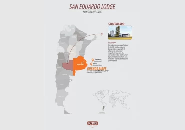 San Eduardo lodge is located 62 miles from the city of Santa Rosa, in the province of La Pampa, Argentina, and 400 miles from Buenos Aires Capital City.